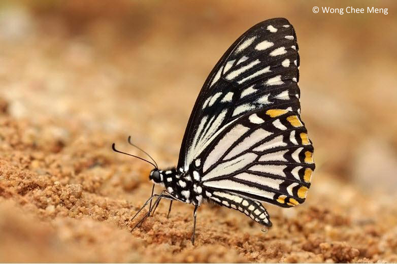 In Singapore, only the black-and-white striped form-dissimilis of the species occurs. We have not observed the other brown forms of the Common Mime here.