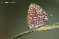 This small-sized Arhopala is rather rare, but reported to be "'taken with some regularity in Singapore." The species has been encountered very locally in the nature reserves and makes its appearance relatively often. On occasions, as many as three individuals are seen in the same vicinity. The distinct post-discal spot in space 7 separates this species easily.