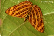The butterfly has a feeble but erratic flight and alights with its wings opened flat when stopping to feed as shown in the photo above where it was feeding on a damp seepage along a forest path. It also has a peculiar habit of stopping on the undersides of leaves with its wings opened flat when disturbed.