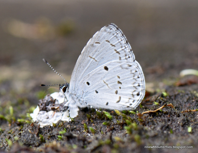 A photo from Nam Nao, nc Thailand. From the lack of spot at the base of HW 7, I assume this is a Celastrina sp, and the white edges to the back spots makes me think C. lavendularis. But how to tell this apart from Udara placidula, or even U. cyma.?
