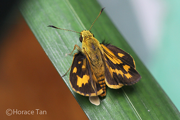 Potanthus pseudomaesa. Abdominal end black-banded.